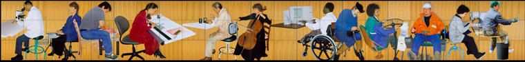 On the first level, twelve different people are painted