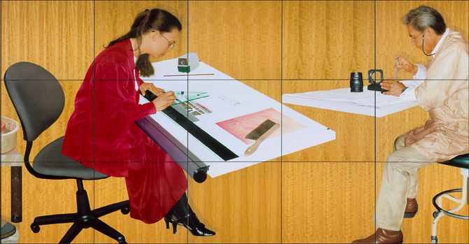 Figure from Mural Level One: Architect and Camera Repairman Acrylic on Wood